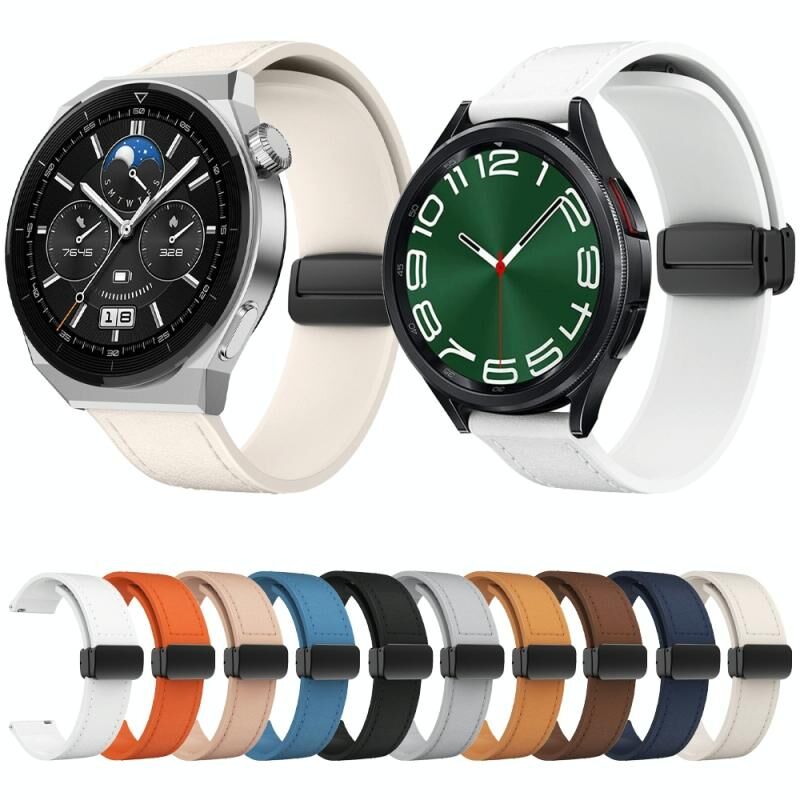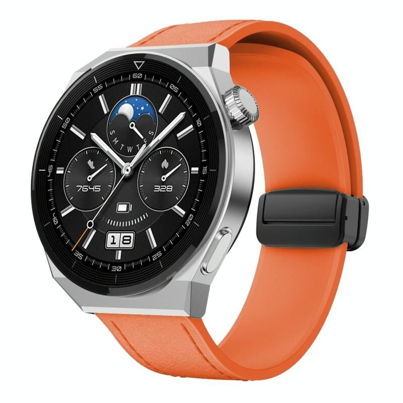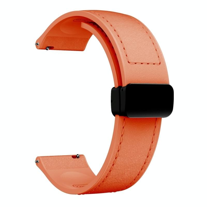 22mm Μαγνητική μαύρη πόρπη σιλικόνης δερμάτινη ζώνη ρολογιού (πορτοκαλί)