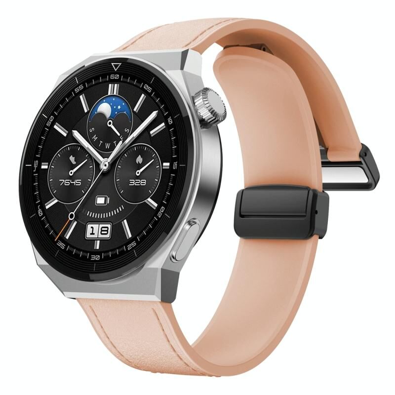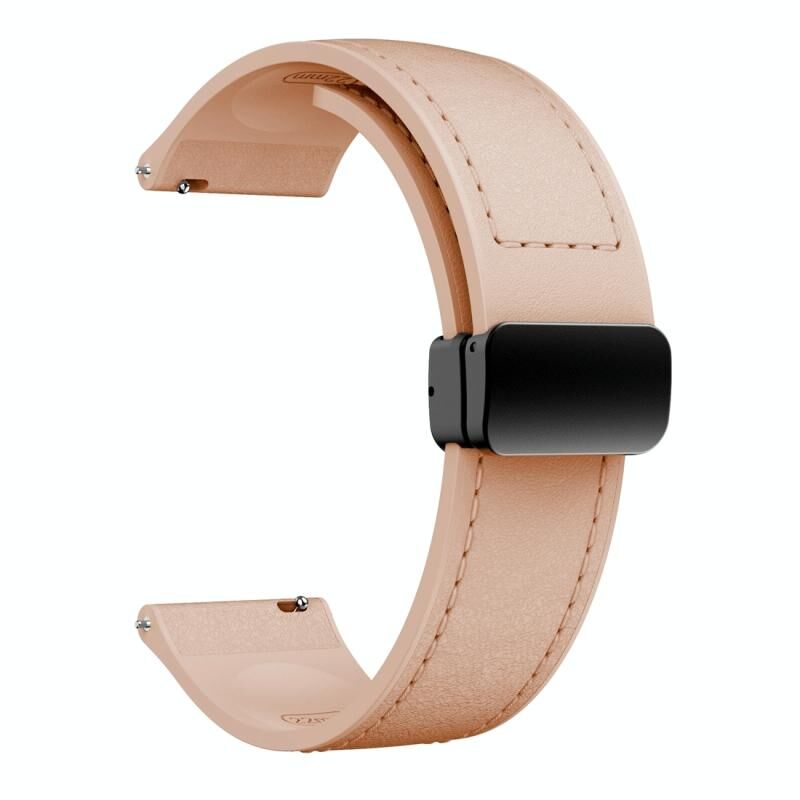 22mm Μαγνητική μαύρη πόρπη σιλικόνης δερμάτινη ζώνη ρολογιού (ροζ)