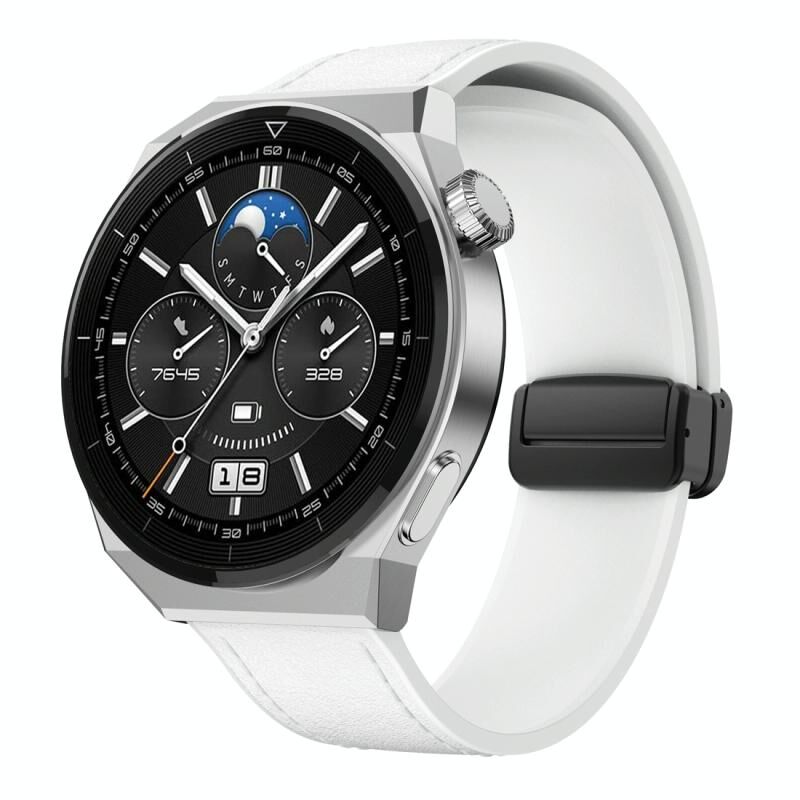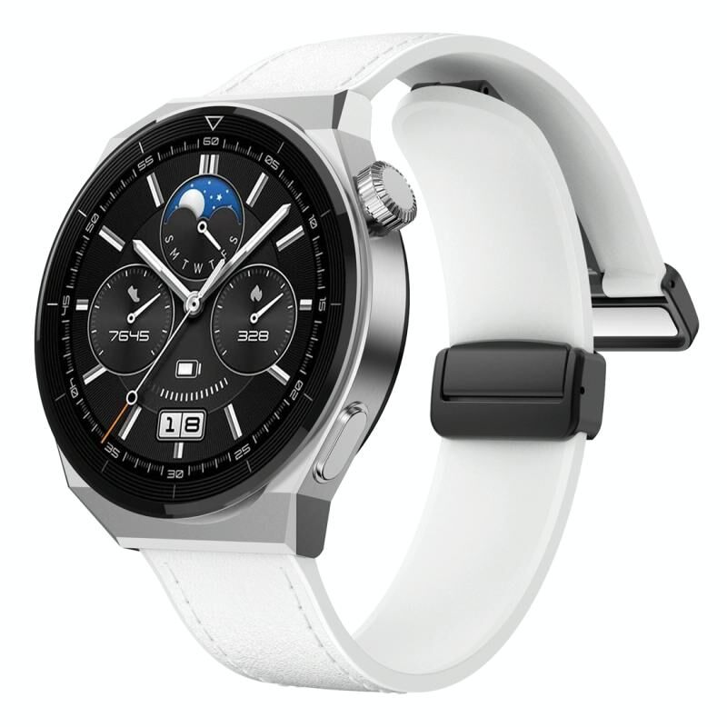 22mm Μαγνητική μαύρη πόρπη σιλικόνης δερμάτινη ζώνη ρολογιού (λευκό)