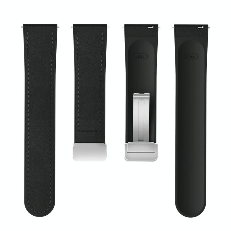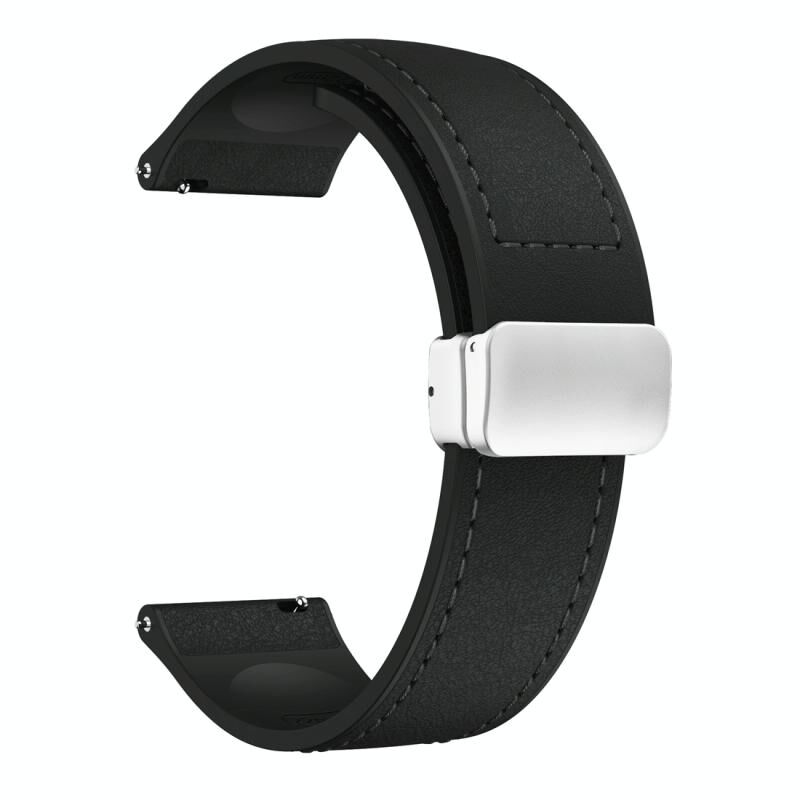 22mm μαγνητική ασημένια πόρπη σιλικόνης δερμάτινη ζώνη ρολογιού (μαύρο)
