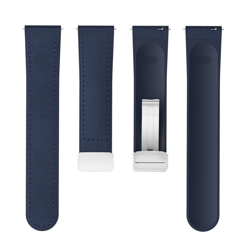 22mm μαγνητική ασημένια πόρπη σιλικόνης δερμάτινη ζώνη ρολογιού (Midnight Blue)