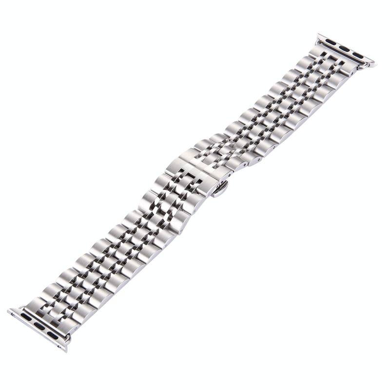 22mm Men Hidden Butterfly Buckle 7 Beads Stainless Steel Watch Band For Apple Watch 42mm(Silver)