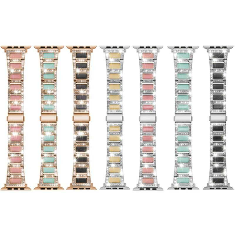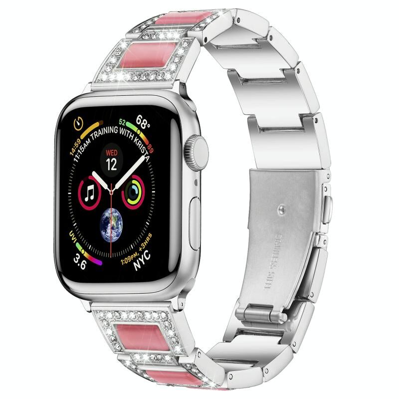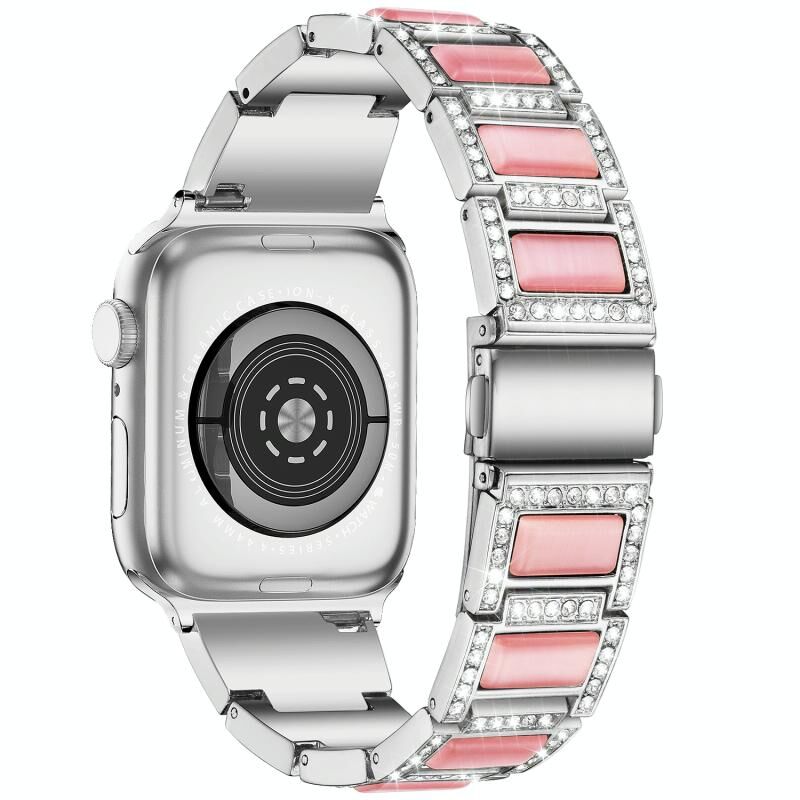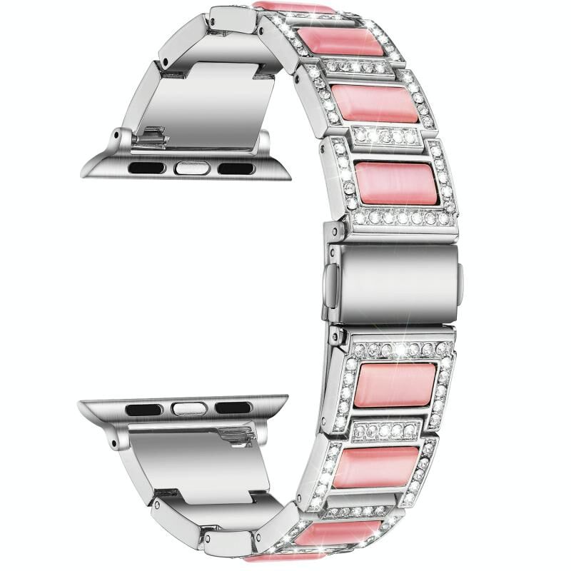 22mm Metal Opal Watch Band For Apple Watch Series 9&8&7 41mm / SE 3&SE 2&6&SE&5&4 40mm / 3&2&1 38mm(Silver Pink)