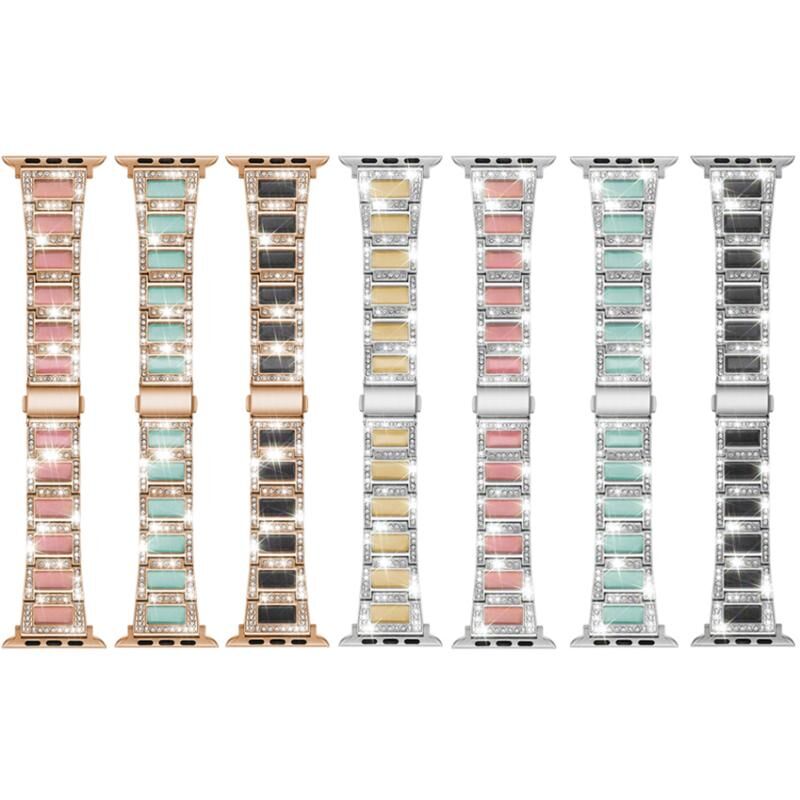 22mm Metal Opal Watch Band For Apple Watch Ultra 49mm&Watch Ultra 2 49mm / Series 9&8&7 45mm / SE 3&SE 2&6&SE&5&4 44mm / 3&2&1 42mm(Rose Gold+Black)