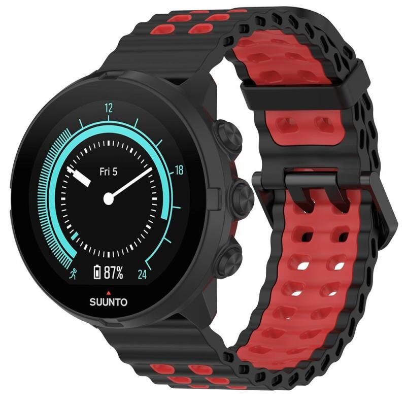 22mm Ocean Dual Pin Buckle Silicone Watch Band(Black Red)