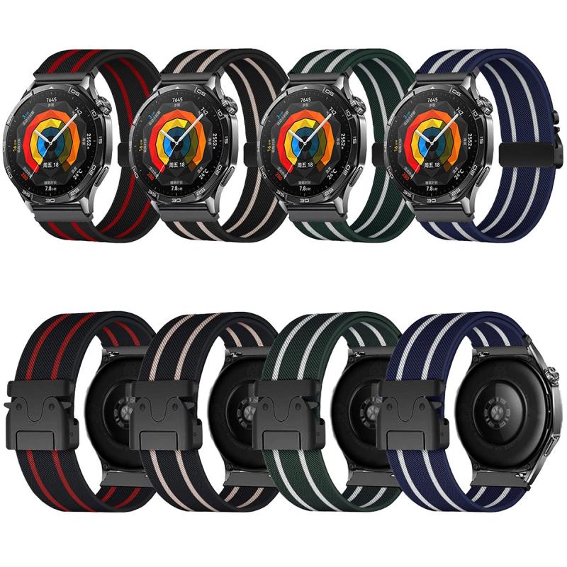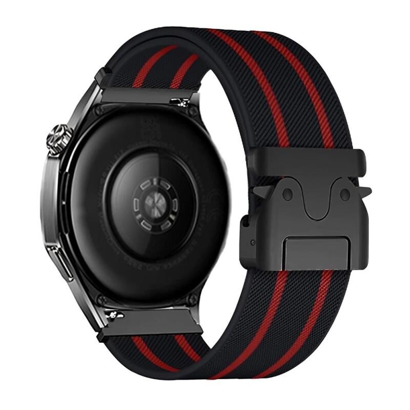 22mm Parachute Buckle Stripe Nylon Elastic Braided Watch Band(Black Red)