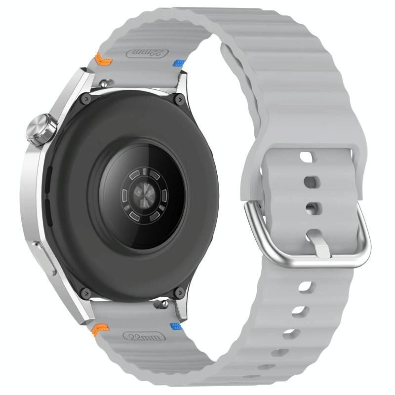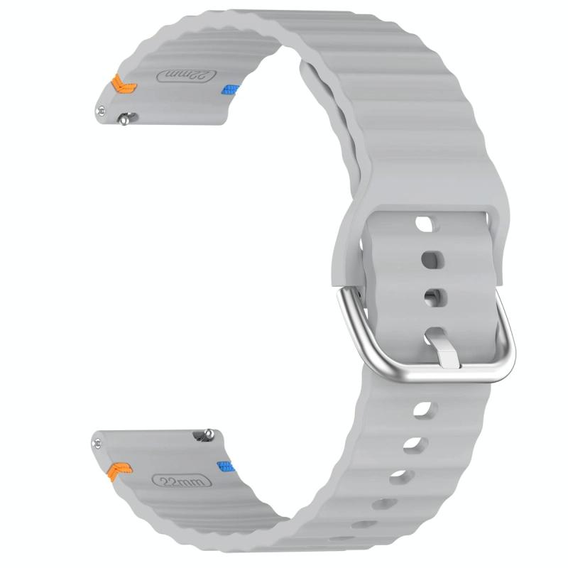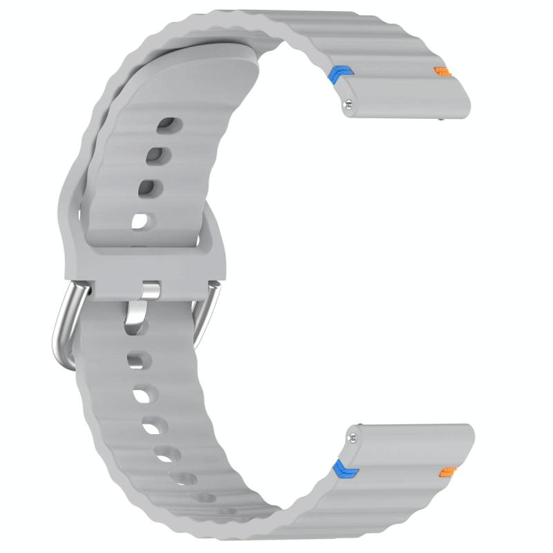 22mm Silver Steel Buckle Wavy Grain Stitched Silicone Watch Band(Grey)