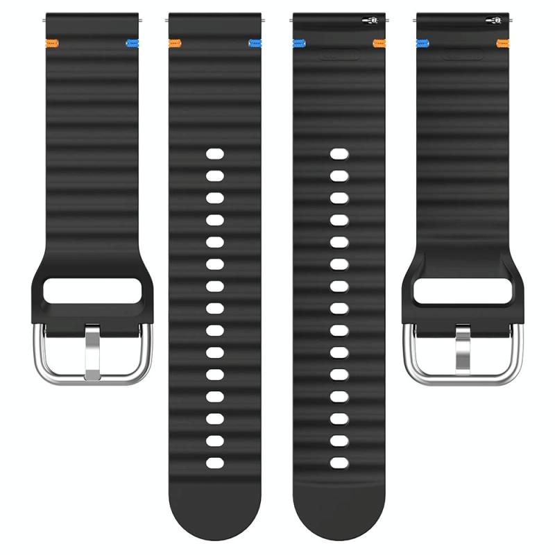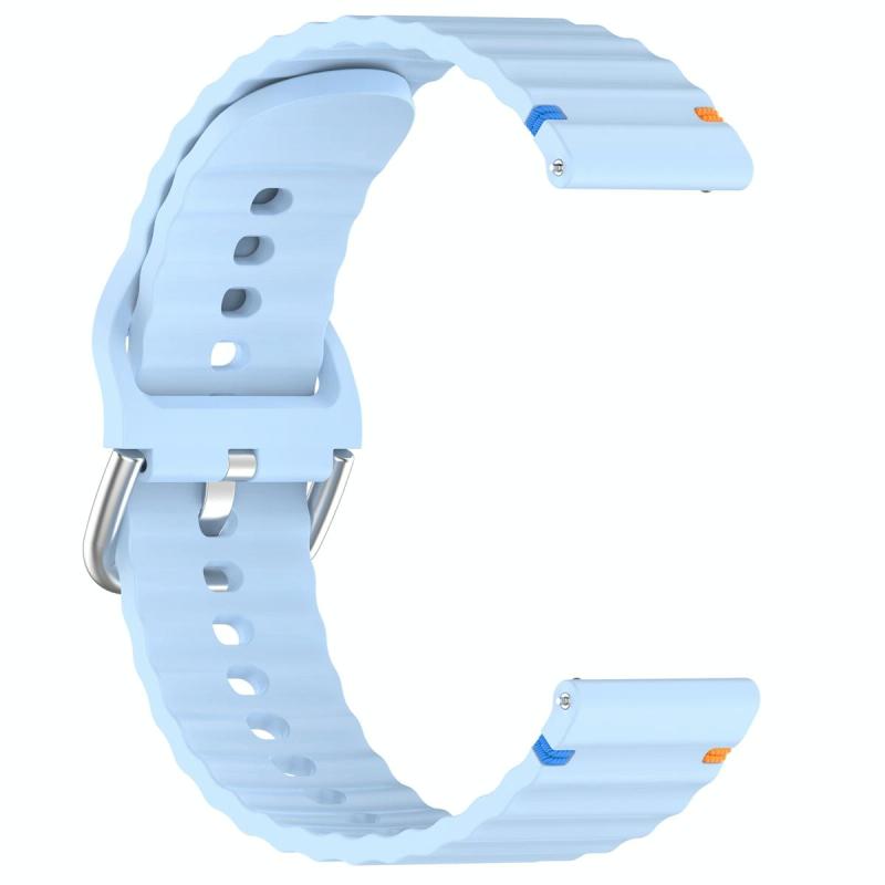 22mm Silver Steel Buckle Wavy Grain Stitched Silicone Watch Band(Light Blue)