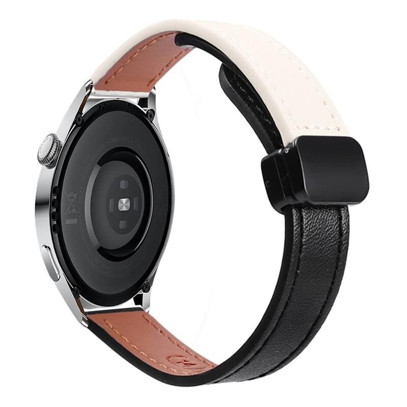 22mm λεπτό μαγνητικό λουράκι με πόρπη από δέρμα μικροϊνών για το Huawei Watch 3 Pro (Μαύρο+Απρίκο)