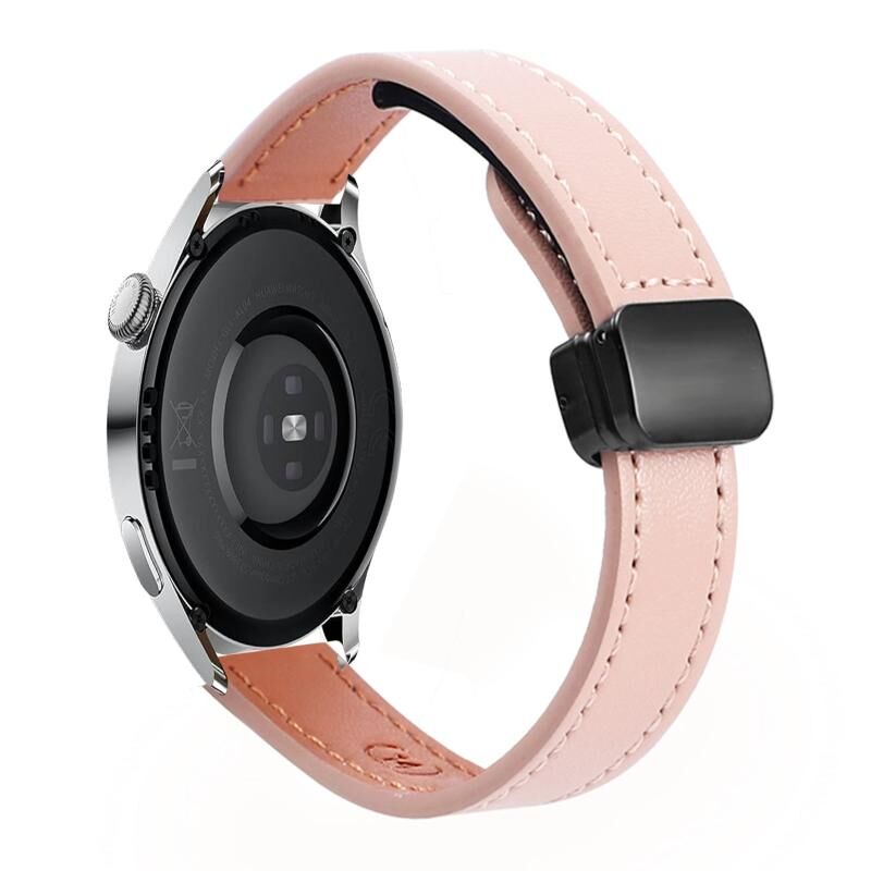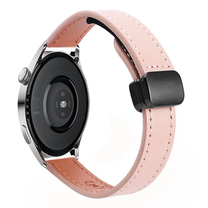 22 χιλιοστά λεπτό μαγνητική πόρπη δερμάτινη ζώνη ρολογιού μικροϊνών για το Huawei Watch 3 Pro New (Sakura Pink)