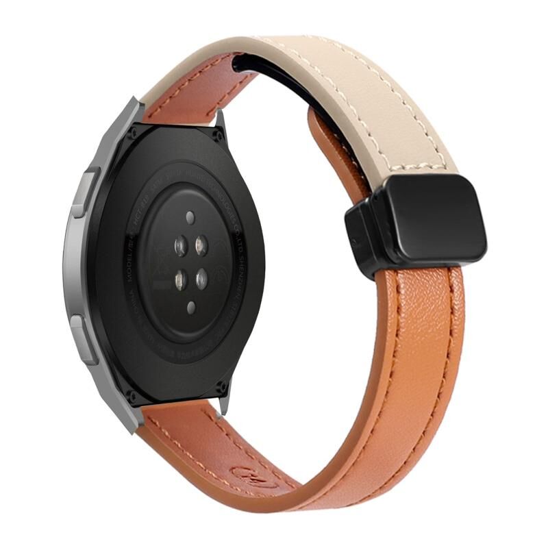 22mm λεπτό μαγνητικό λουράκι με πόρπη από δέρμα μικροϊνών για το Huawei Watch GT 2e (Aimaorange+Cream Apricot)