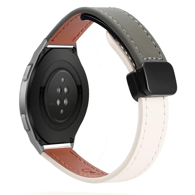 22mm λεπτό μαγνητικό λουράκι με πόρπη από δέρμα μικροϊνών για το Huawei Watch GT 2e (βερίκοκο + πράσινο αβοκάντο)