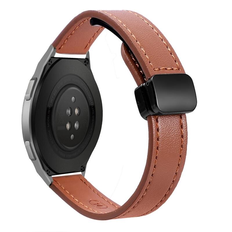 22mm λεπτό μαγνητικό λουράκι με πόρπη από δέρμα μικροϊνών για το Huawei Watch GT 2e (Caramel Macchiato)