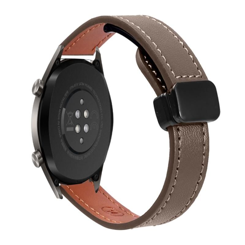 22 χιλιοστά λεπτό μαγνητική πόρπη μικροϊνών δερμάτινη ζώνη ρολογιού για το Huawei Watch GT (καφέ μόκα)