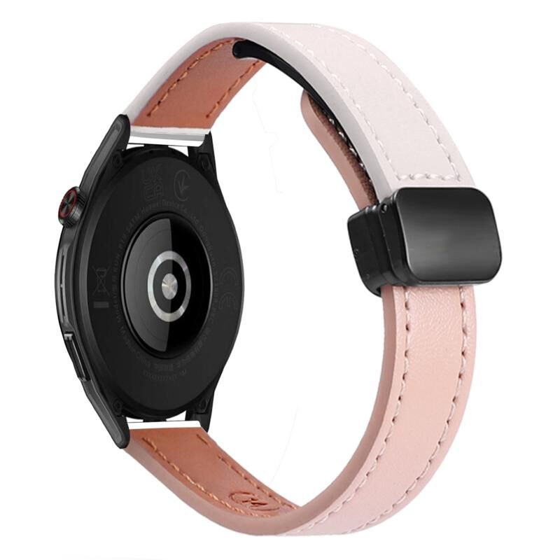 22 χιλιοστά λεπτό μαγνητική πόρπη μικροϊνών δερμάτινο λουράκι ρολογιού για το Huawei Watch GT Runner (ροζ+απρίκο)