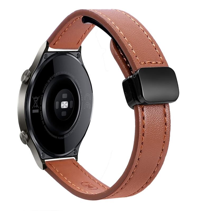 22mm λεπτό μαγνητικό λουράκι με πόρπη από δέρμα μικροϊνών για το Huawei Watch GT2 46mm (Caramel Macchiato)