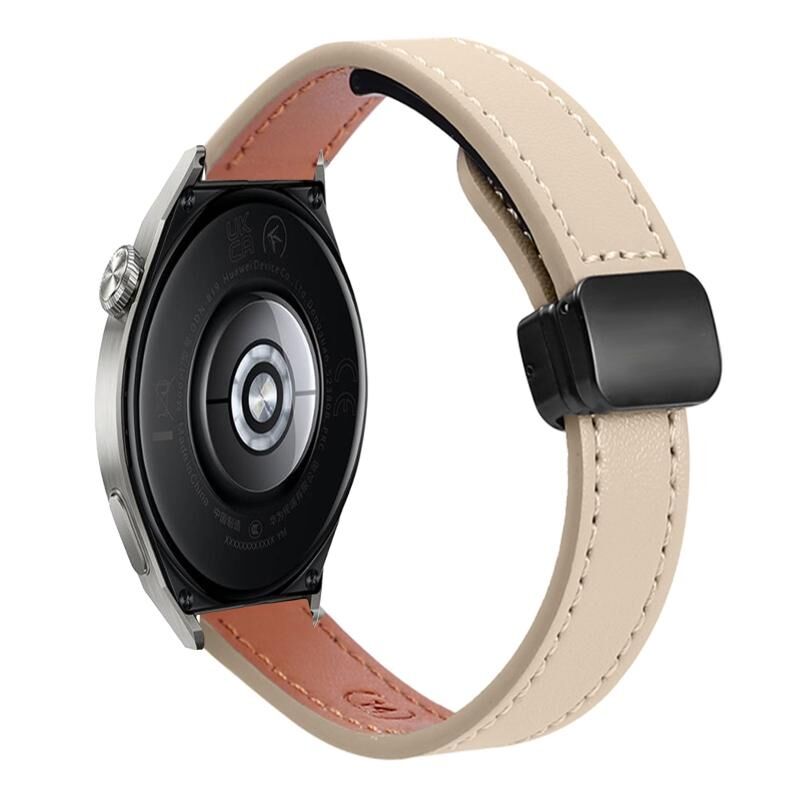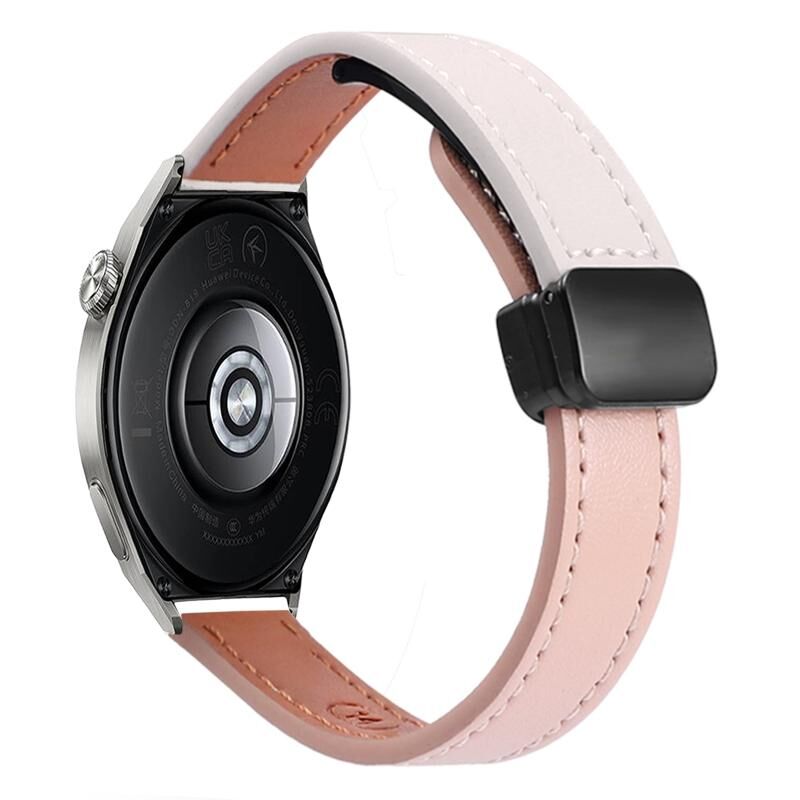 22mm λεπτό μαγνητικό λουράκι με πόρπη από δέρμα μικροϊνών για το Huawei Watch GT3 46mm (ροζ+απρίκο)