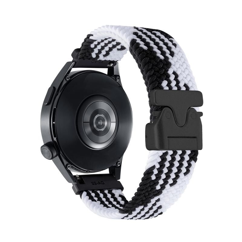 22mm Snap Button Nylon Braided Watch Band (Μαύρο Λευκό)