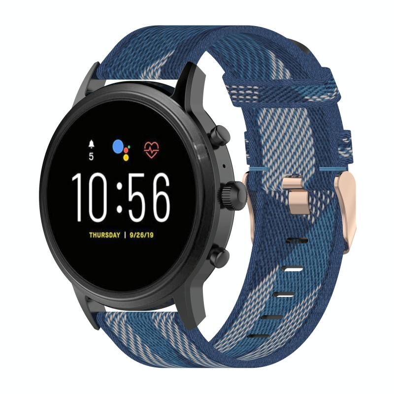 Λουρί ρολογιού από νάιλον με ρίγες 22mm για Fossil Gen 5 Carlyle, Gen 5 Julianna, Gen 5 Garrett, Gen 5 Carlyle HR (Μπλε)