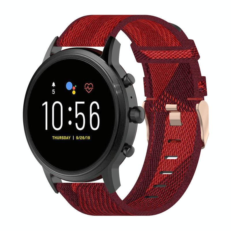 22mm Stripe Weave Nylon Wrist Strap Watch Band for Fossil Gen 5 Carlyle, Gen 5 Julianna, Gen 5 Garrett, Gen 5 Carlyle HR (Red)