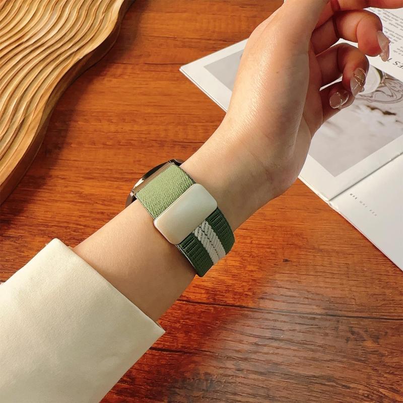 22mm Striped Magnetic Buckle Nylon Watch Band(Green White)
