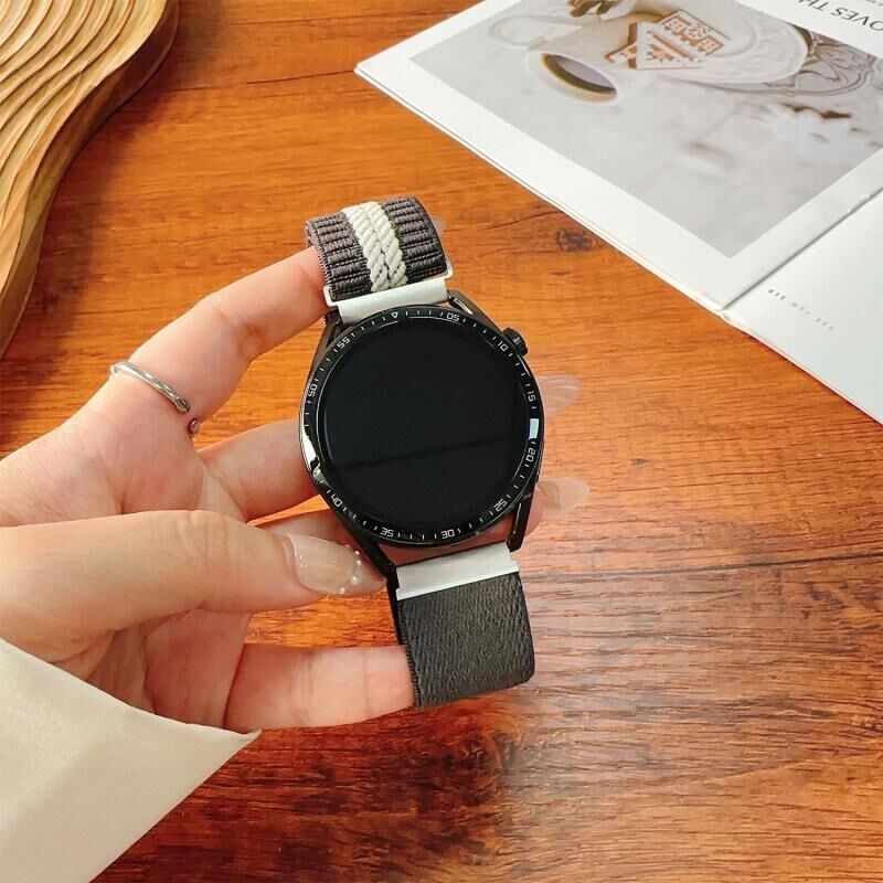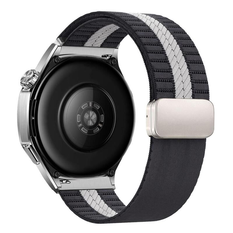 22mm Striped Magnetic Buckle Nylon Watch Band(Grey White)