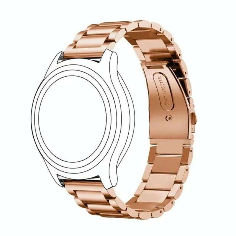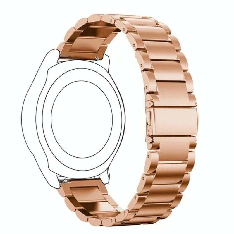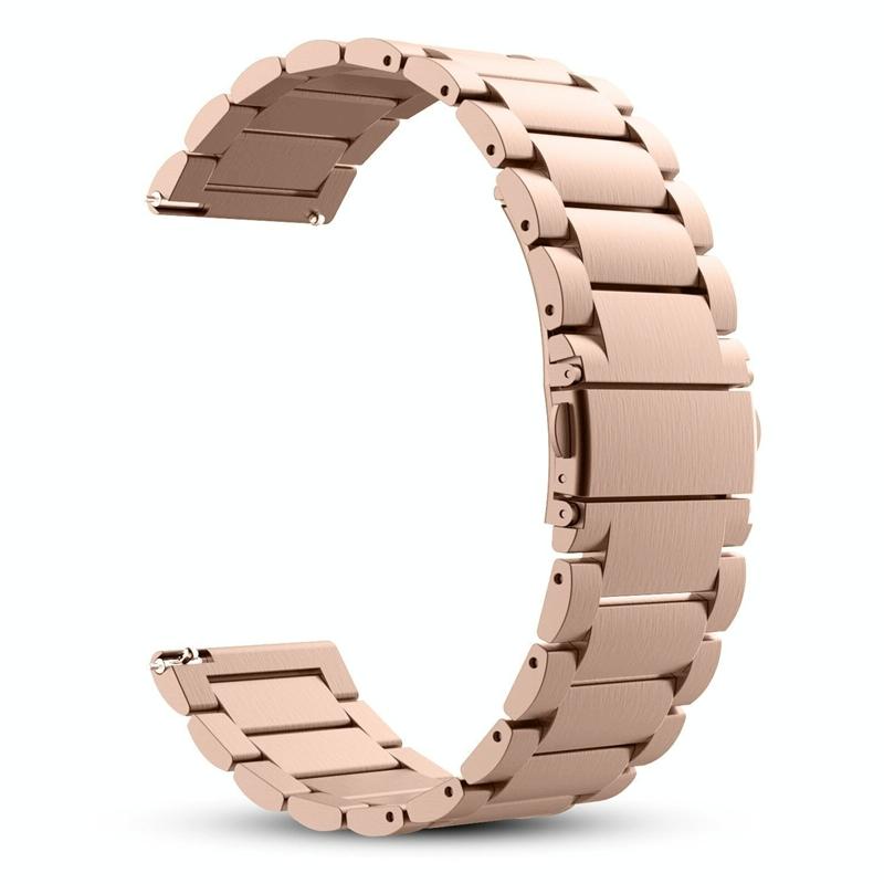 22mm Three Flat Buckle Stainless Steel Replacement Watchband for Huawei Watch GT2 Pro / Amazfit GTR 2(Rose Gold)