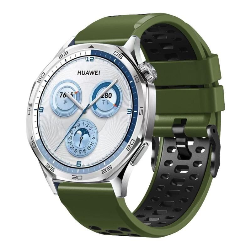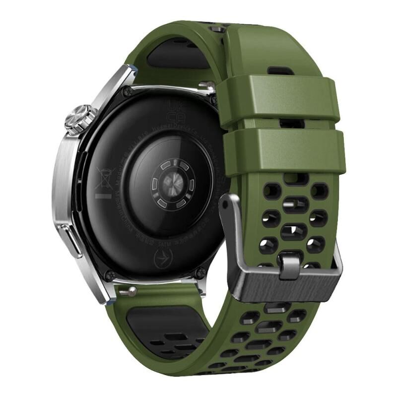 22mm Three-row Hole Breathable Two Color Silicone Watch Band(Army Green Black)