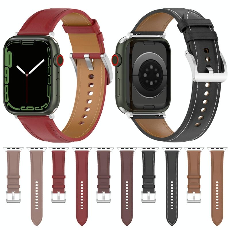 Λουρί ραφής από δέρμα αγελάδας ανώτερης ποιότητας 22mm για Apple Watch Ultra 49mm & Watch Ultra 2 49mm / Series 9 & 8 & 7 45mm / SE 3 & SE 2 & 6 & SE & 5 & 4 44mm / 3 & 2 & 1 42mm (Μαύρο)