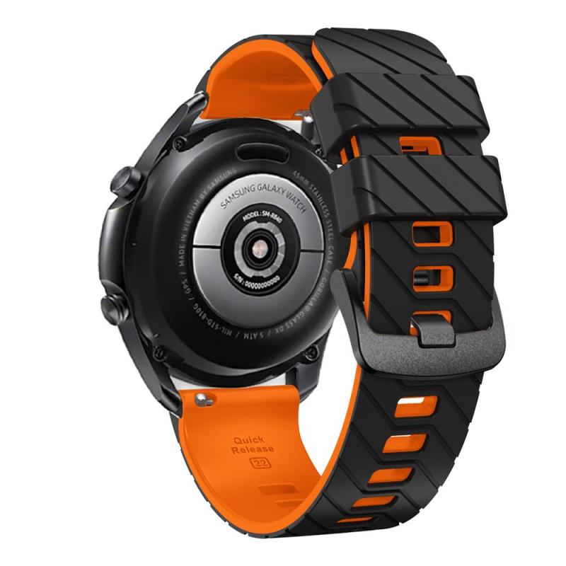 22mm Twill Dual Color Silicone Watch Band(Black Orange)