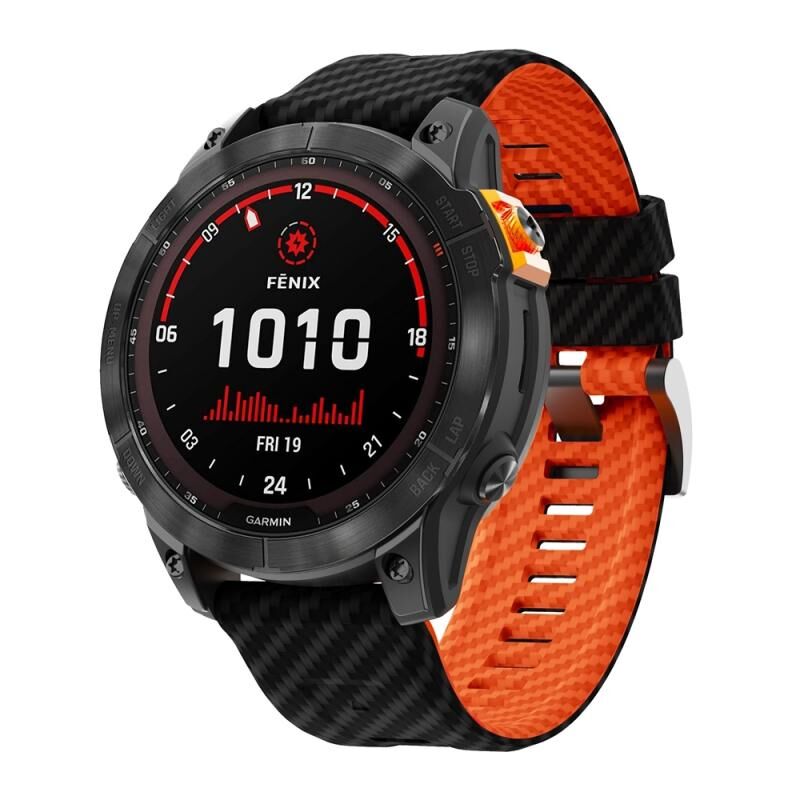 22 χιλιοστά δύο χρωμάτων Carbon Fiber μοτίβο σιλικόνης ρολόι μπάντα (μαύρο πορτοκαλί)