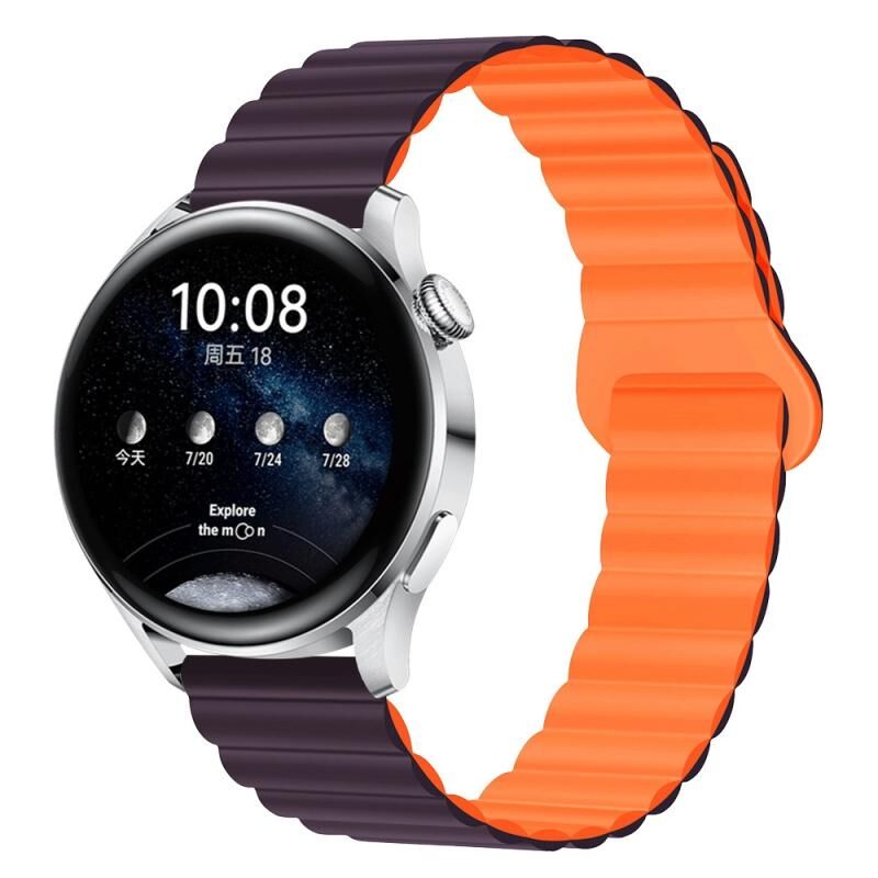 22 χιλιοστά δύο χρωμάτων μαγνητική ζώνη ρολογιού σιλικόνης (Berry Purple Orange)