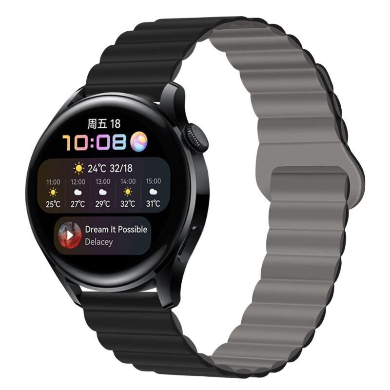 22 χιλιοστά δύο χρωμάτων μαγνητική ζώνη ρολογιού σιλικόνης (μαύρο γκρι)