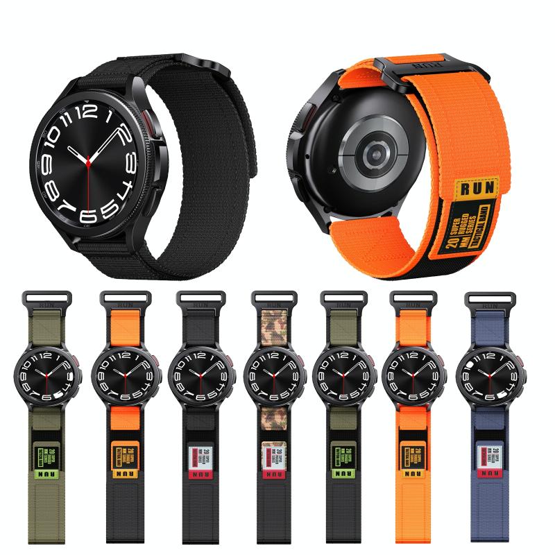 22mm Two Color Nylon Canvas Hook And Loop Fastener Watch Band(Black+Red)