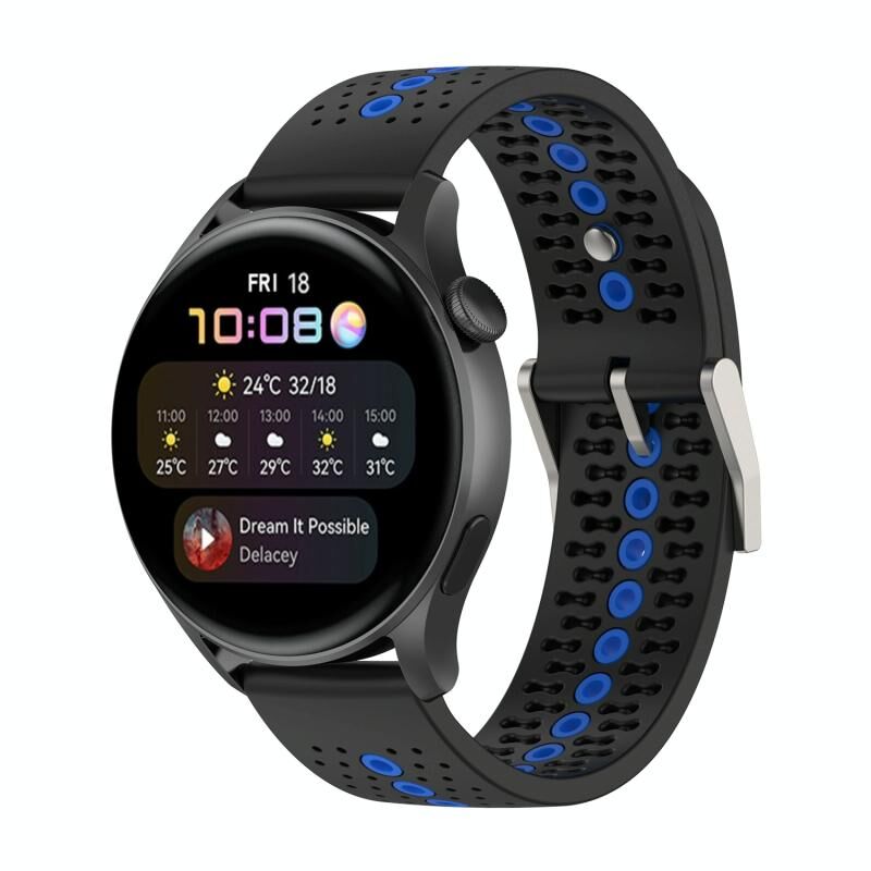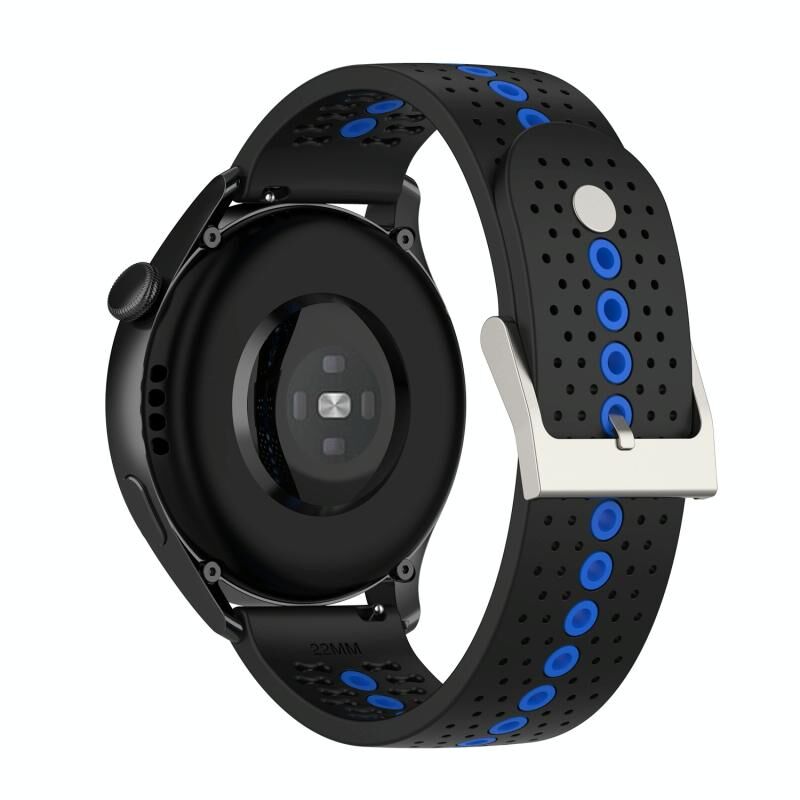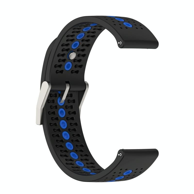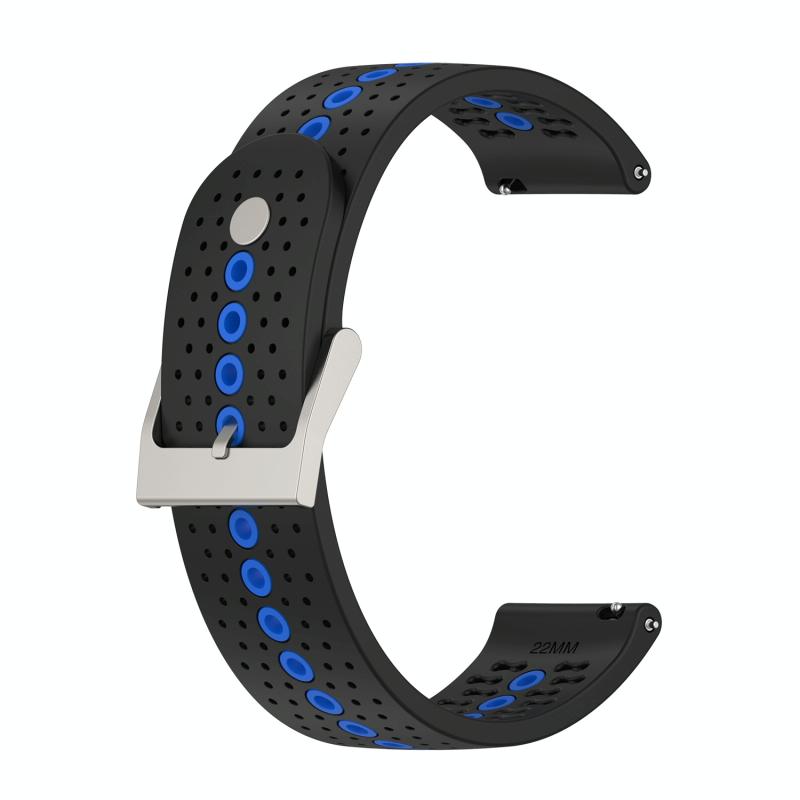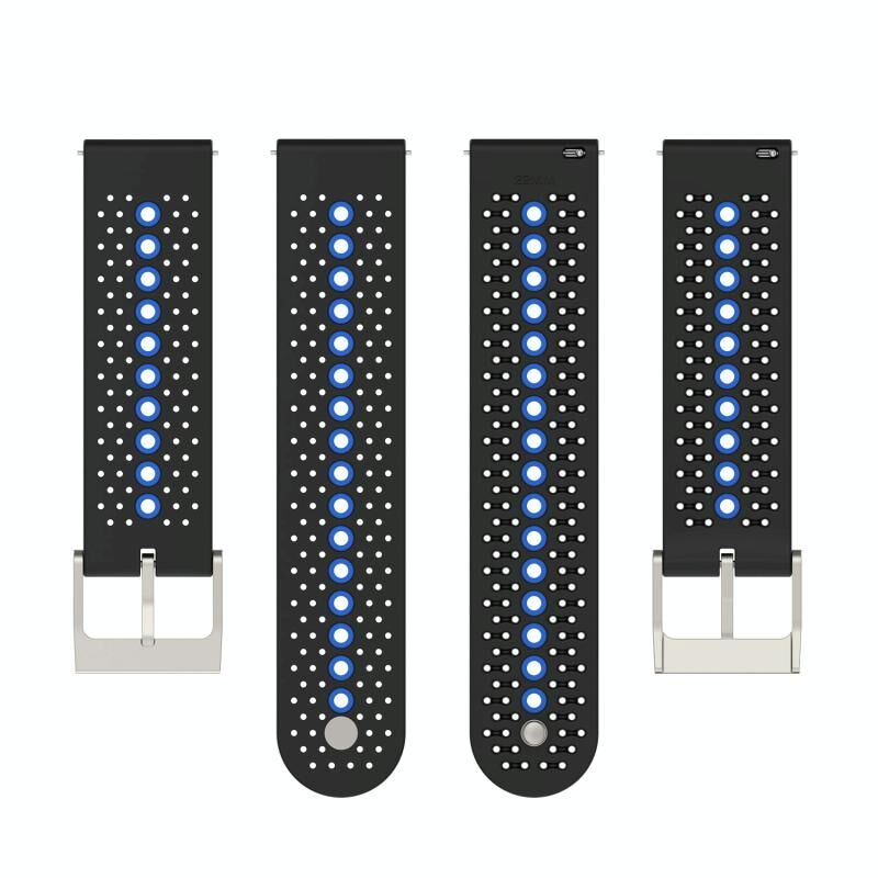 22mm Universal Colorful Hole Silicone Watch Band(Black Blue)