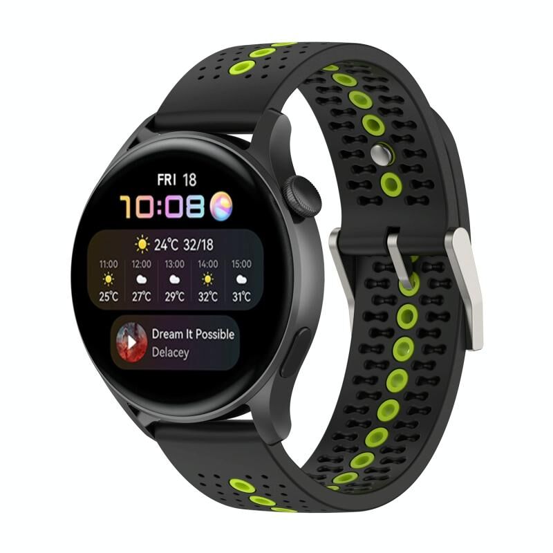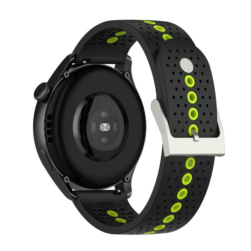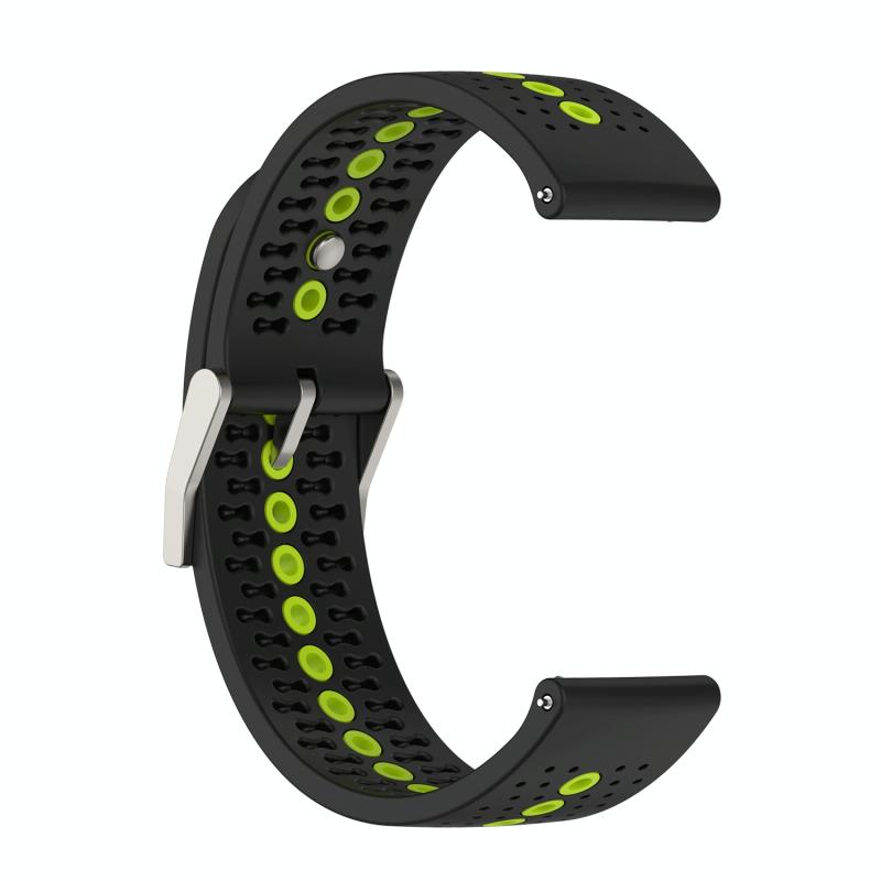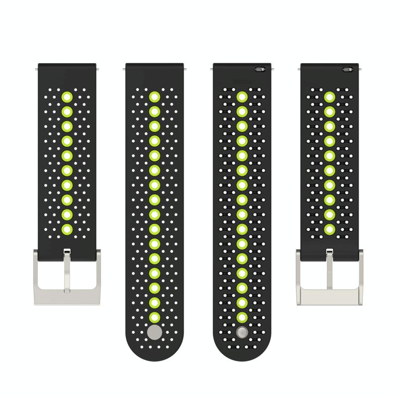 22mm Universal Colorful Hole Silicone Watch Band(Black Lime Green)