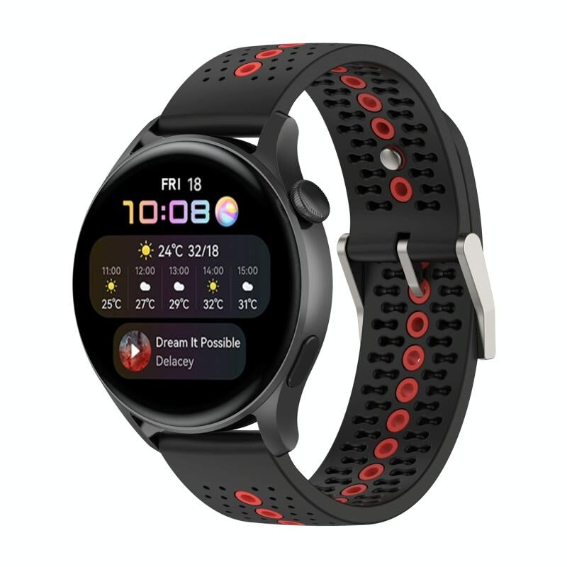 22mm Universal Colorful Hole Silicone Watch Band(Black Orange)