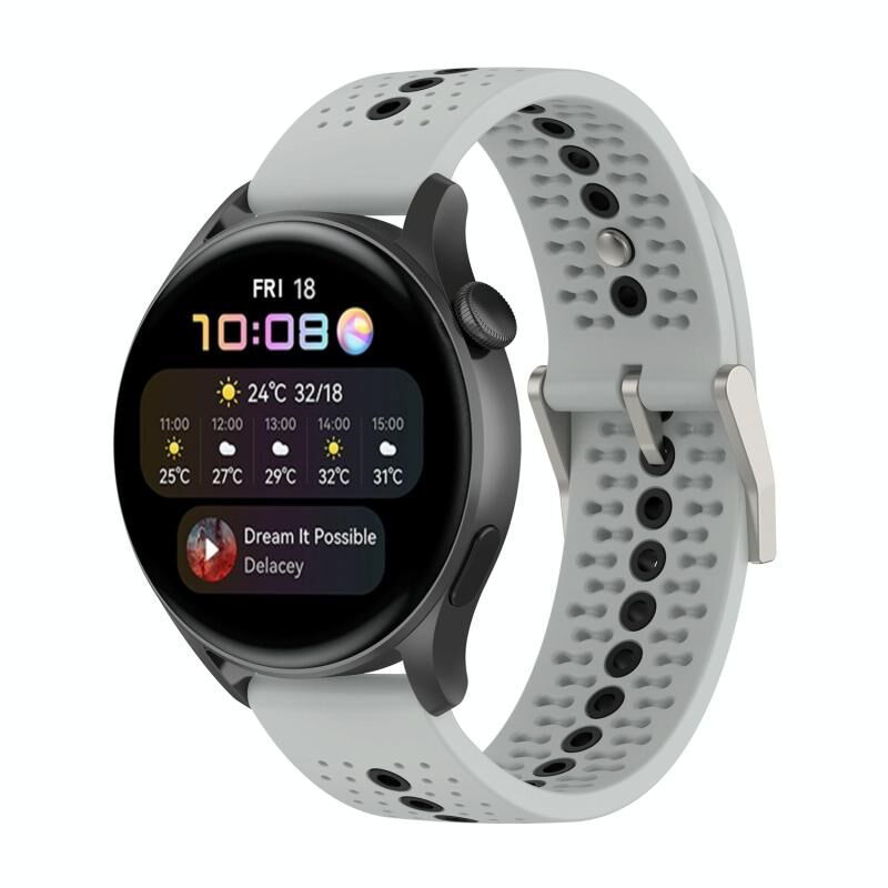 22mm Universal Colorful Hole Silicone Watch Band(Grey Black)