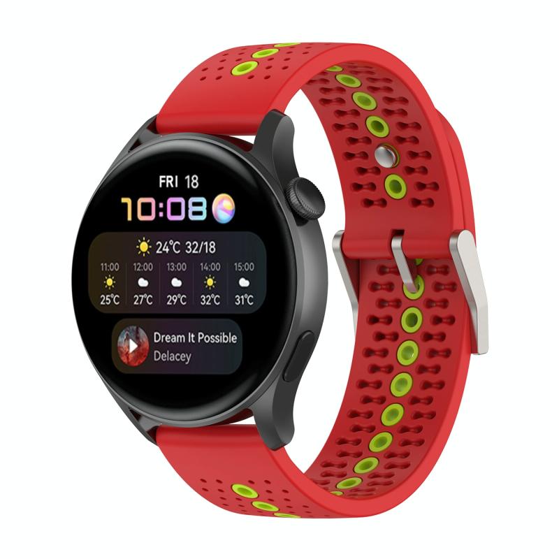 22mm Universal Colorful Hole Silicone Watch Band(Red Green)