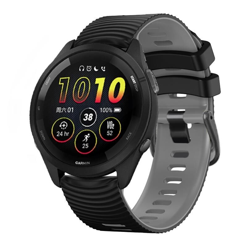 22mm Universal Curved Two Color Silicone Watch Band(Black Grey)