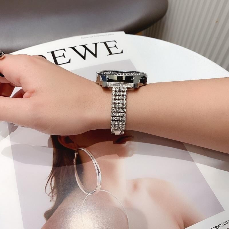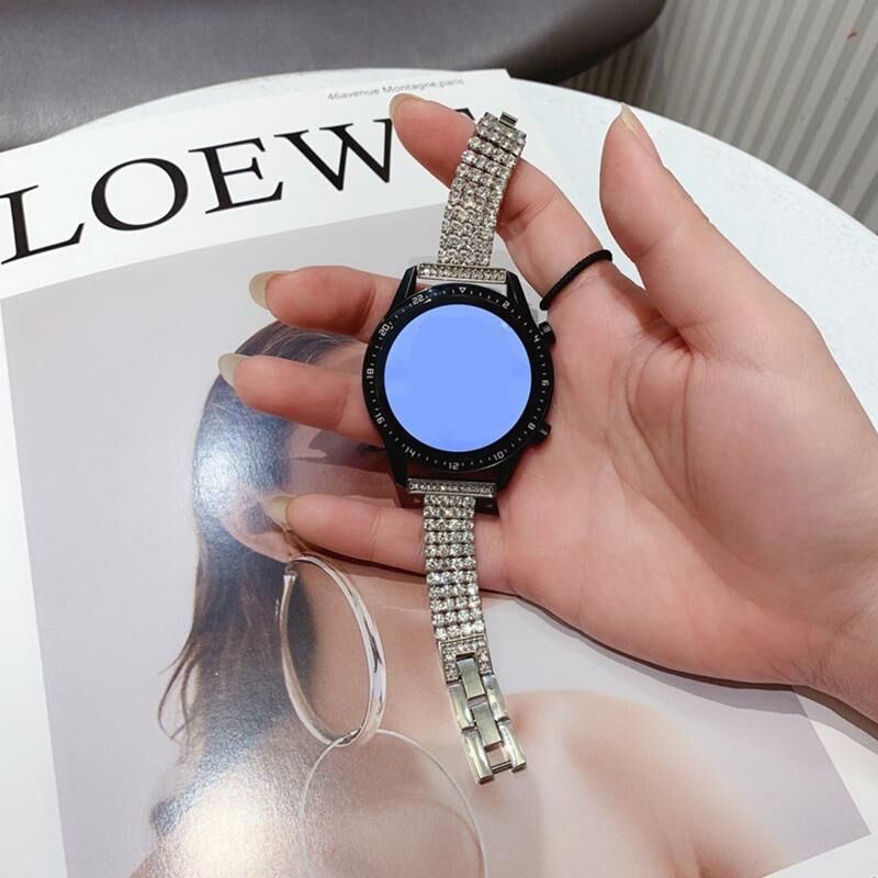 Μπρασλέ για ρολόι από μέταλλο με διαμάντια, καθολικό, τετραπλή σειρά (ασημί), 22mm