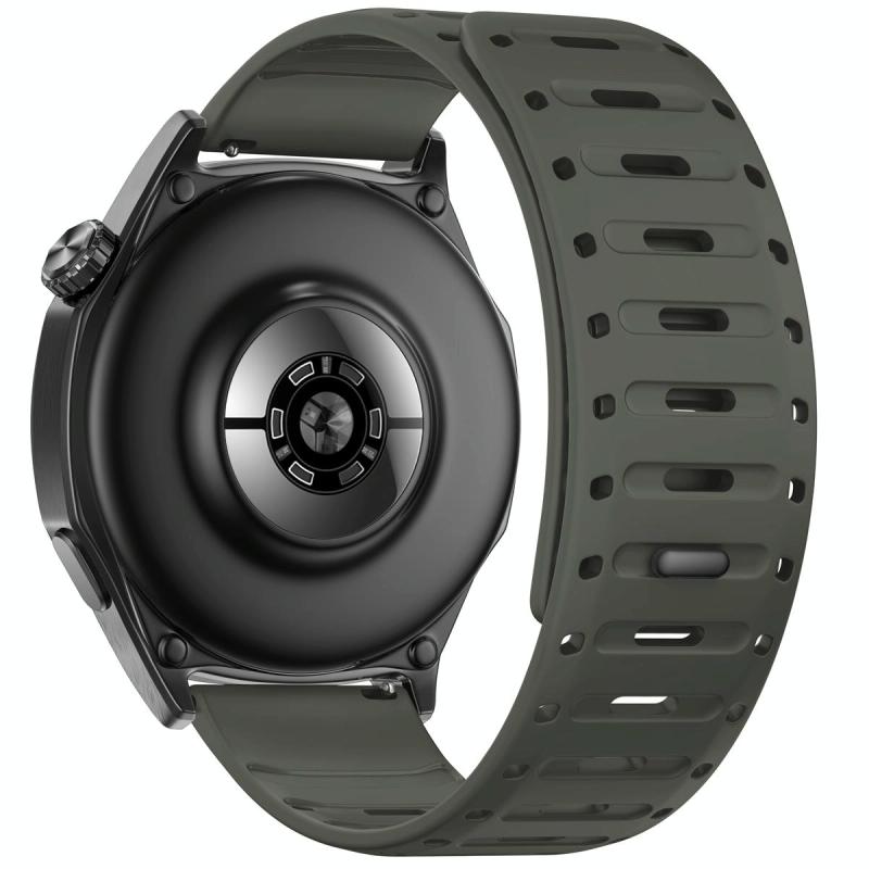 22mm Universal Shark Magnetic Breathable Silicone Watch Band(Dark Green)