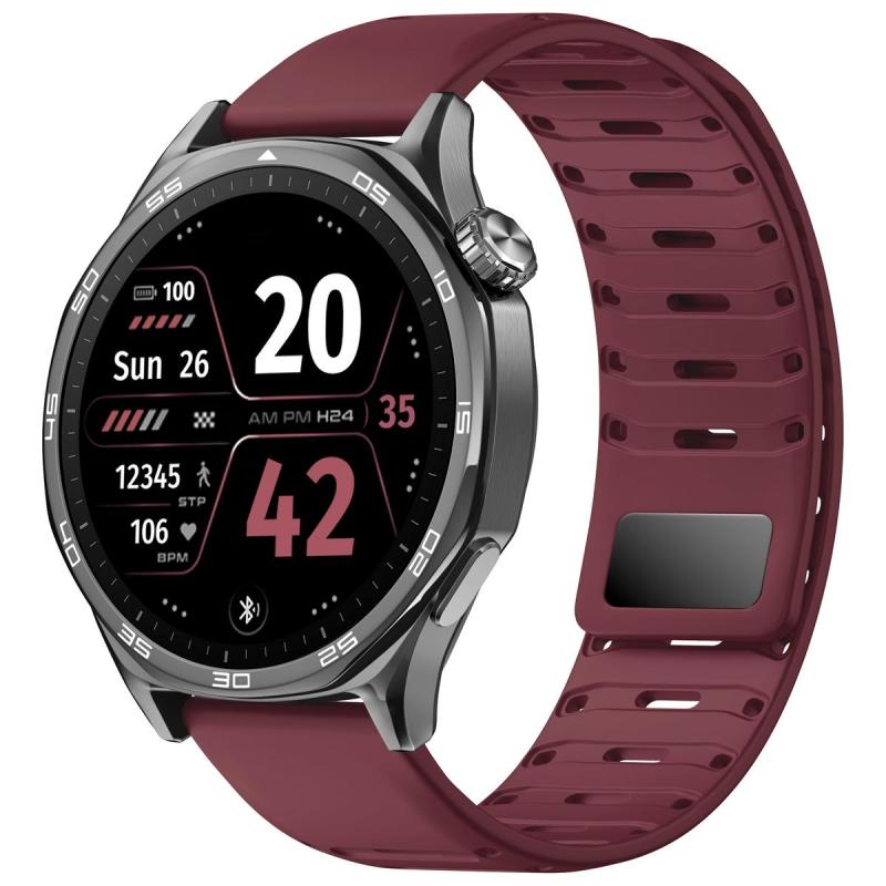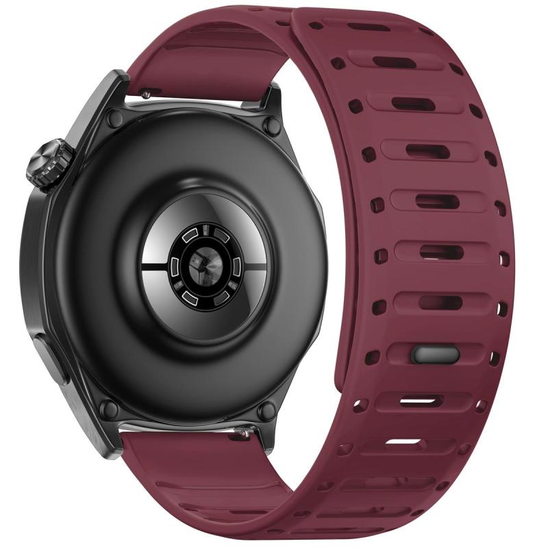 22mm Universal Shark Magnetic Breathable Silicone Watch Band(Wine Red)