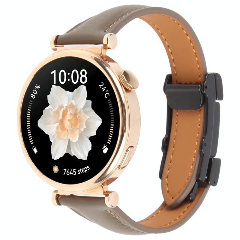 22mm Universal Slim Magnetic Buckle Genuine Leather Watch Band(Plain Weave Dark Grey)