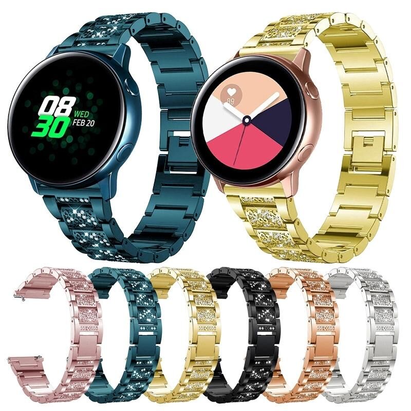 22mm Universal Three-beads Diamond Steel Watch Band(Blue)