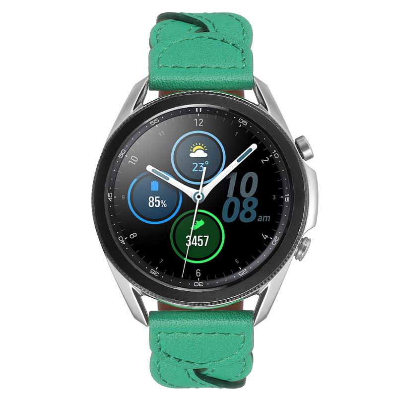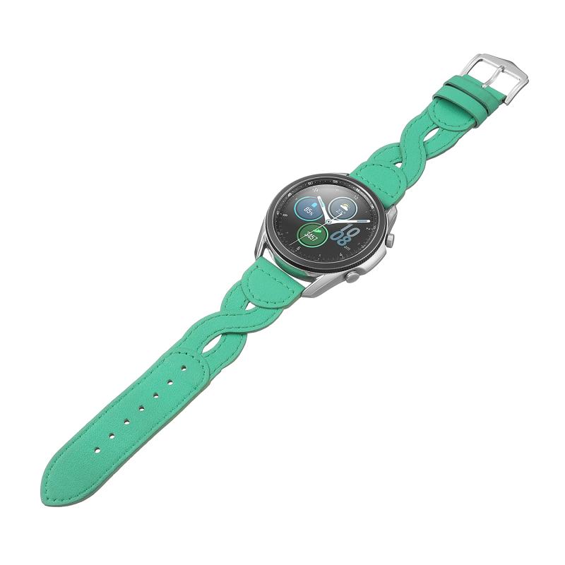22mm Universal Twist Stitched Genuine Leather Watch Band(Green)