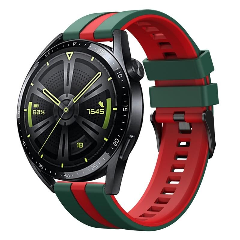 22mm Κάθετη ζώνη ρολογιού σιλικόνης δύο χρωμάτων (σκούρο πράσινο + κόκκινο)