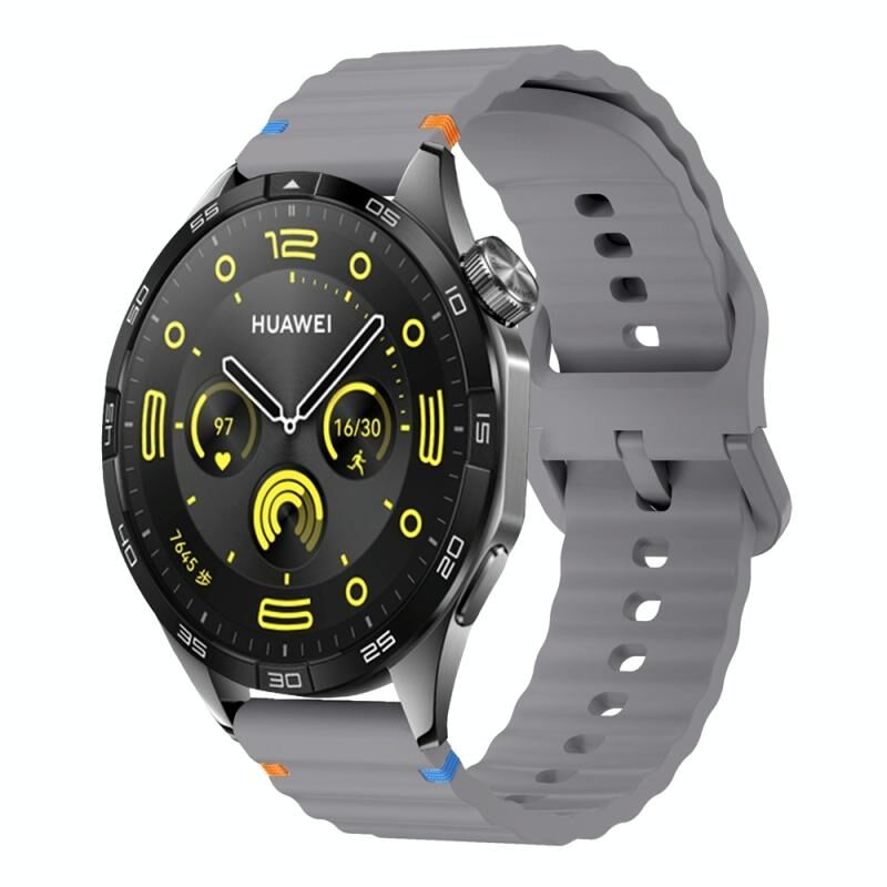 22mm Wave μοτίβο ραμμένο σιλικόνης ρολόι μπάντα (σκούρο γκρι)