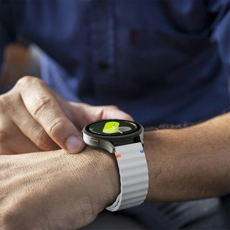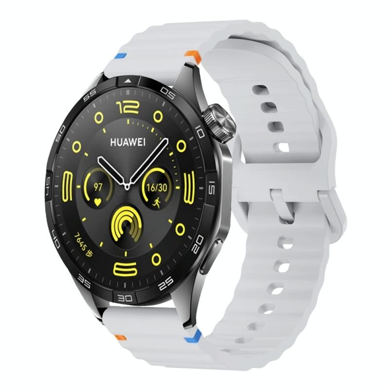 22 χιλιοστά κύμα μοτίβο ραμμένο σιλικόνης ρολόι μπάντα (ανοιχτό γκρι)