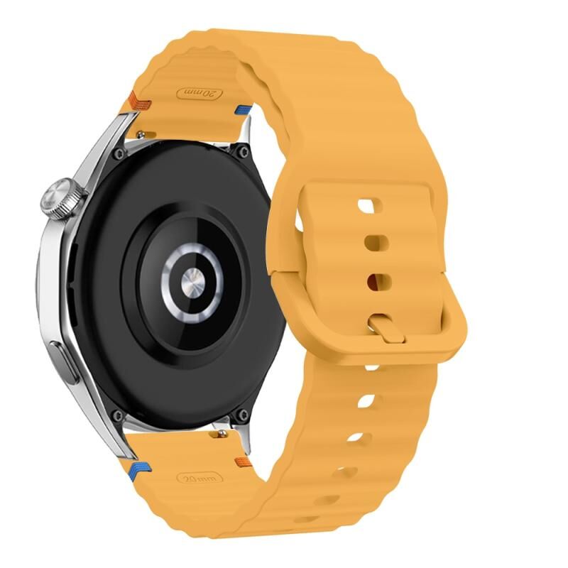 22 χιλιοστά κύμα μοτίβο ραμμένο σιλικόνης ρολόι μπάντα (κίτρινο)